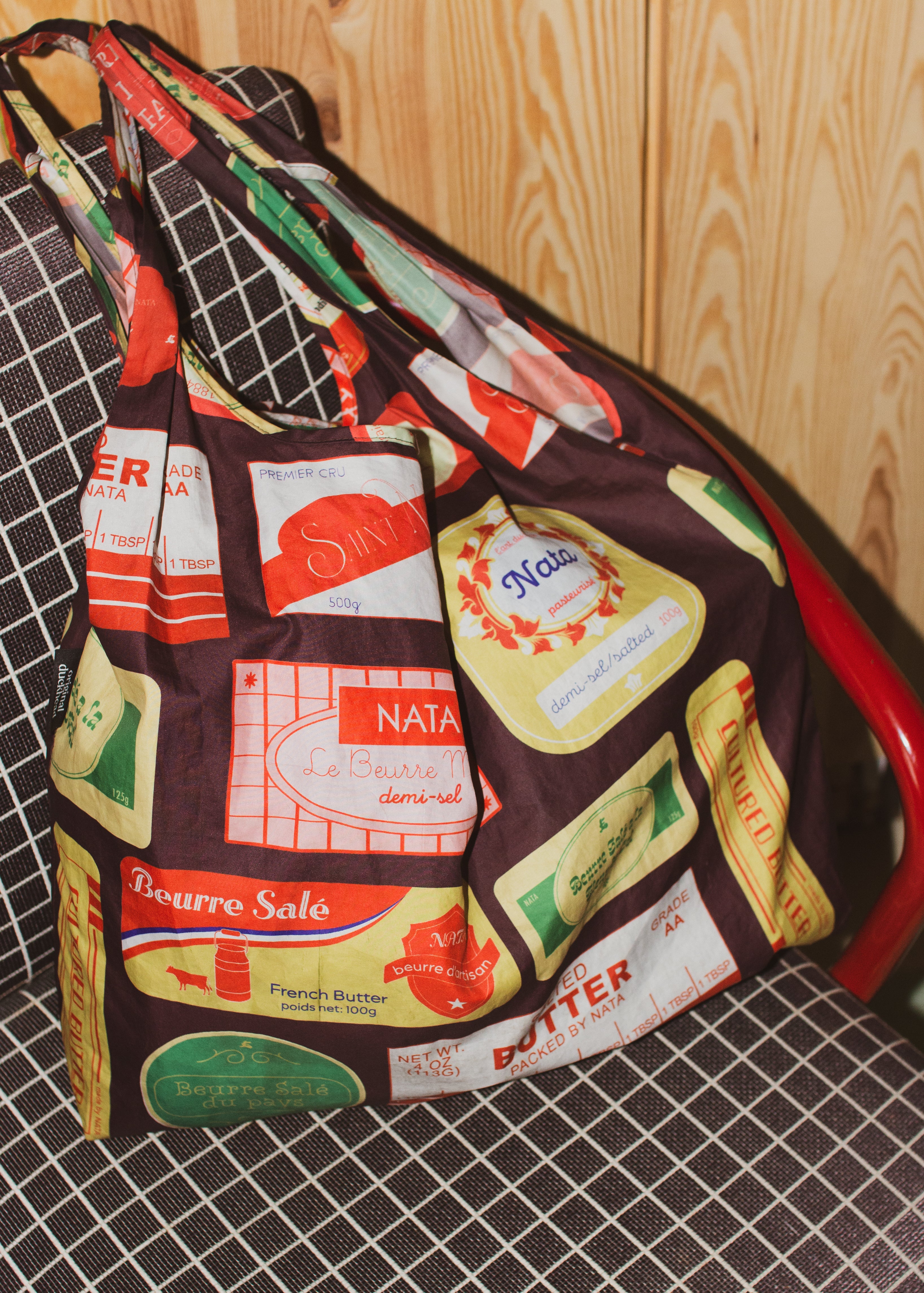 Our buttery-soft reusable bags are finally here, and they’re full of flavour. Featuring an all-over print of nostalgic butter labels inspired by French packaging classics, Beurre Doux (Unsalted butter) and Beurre Salé (Salted butter) are a playful nod to fridge staples we all know and love.