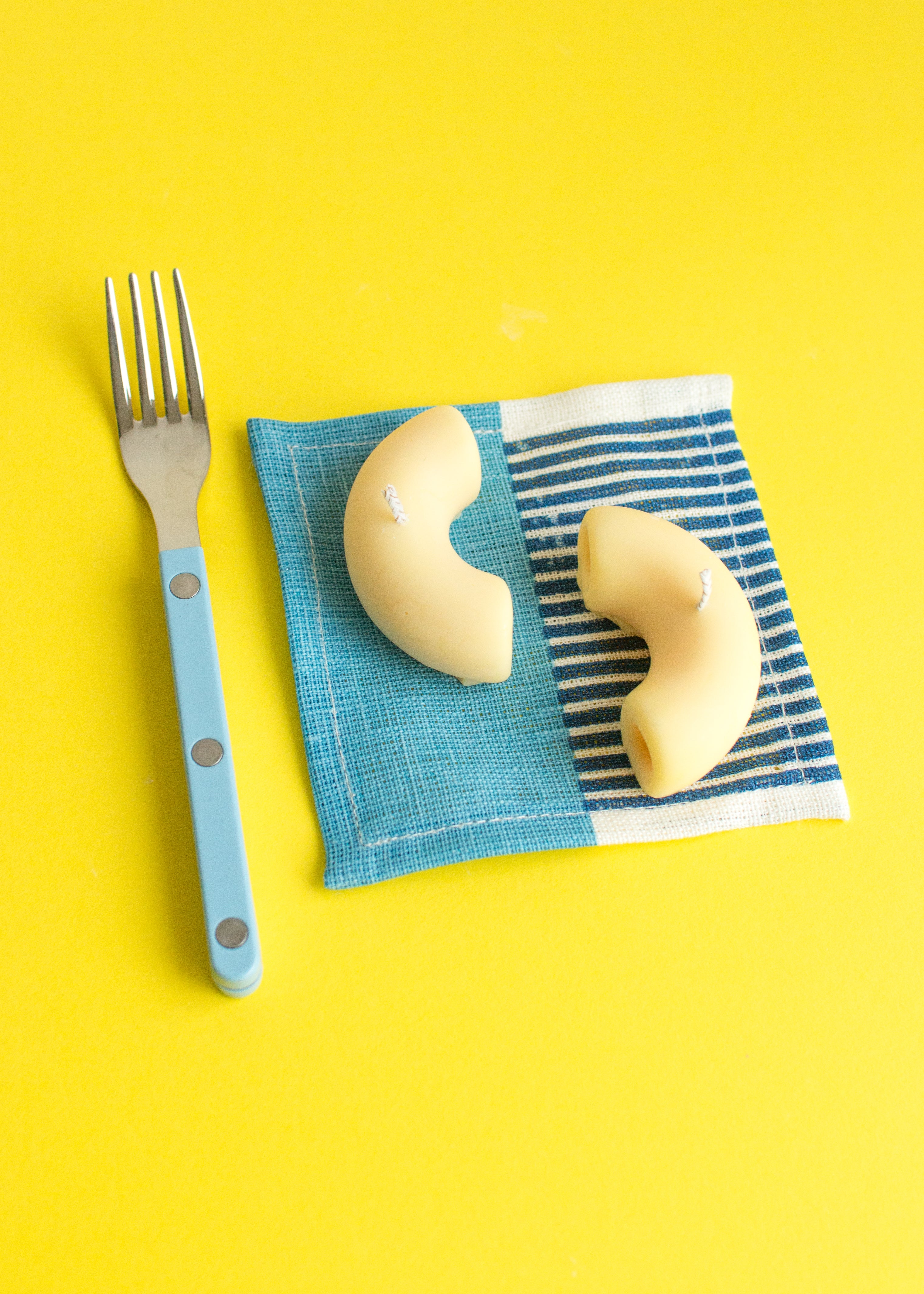 Two elbow-shaped minis with soft bends and comforting nostalgia. Dinner party decor, desk companion or pasta lover’s dream.